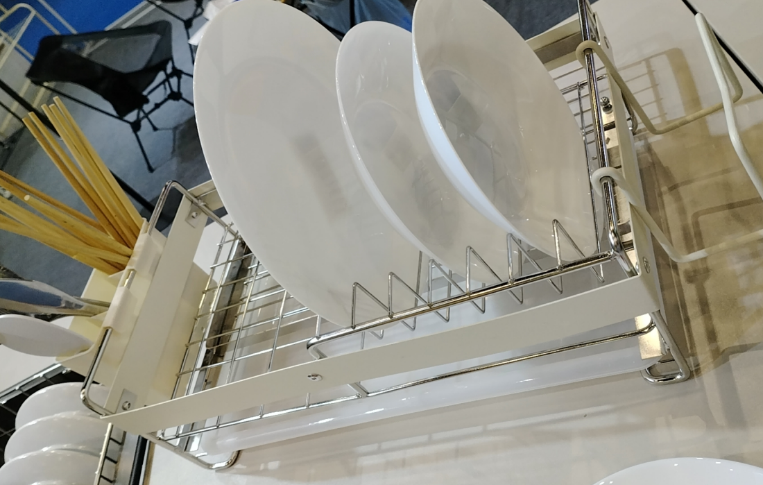 Serie de almacenamiento de cocina: un destacado fue el estante de secado de platos extensible de acero inoxidable, diseñado para una funcionalidad óptima y eficiencia del espacio. La serie también incluye bastidores multifuncionales montados en la pared y soportes de cuchillos magnéticos, todos hechos con estética minimalista ideal para cocinas modernas compactas.